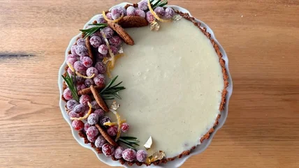 Here's something for the adults at the table, and that's a super-smooth, custardy, buttermilk pie that's served with a helping of blackberries and gets a delightfully boozy kick from moonshine. That escalated quickly, we know, but trust us when we say this might be the perfect way to wind down from the inevitable chaos of Thanksgiving. Blackberry moonshine that you can substitute with blackberry brandy is in the filling and the drizzle, and we'd even suggest that you could switch up this idea with different fruits and brandy flavors. Versatile, easy, and delicious, it's a total win.