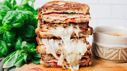 With that illustrious cheese pull and the flavor of marinara sauce, fresh basil, and peppery pepperoni, this pizza grilled cheese is the stuff of legends. Paired with a bowl of homemade tomato sauce and your favorite movie or game night, this recipe is sure to be a home run.