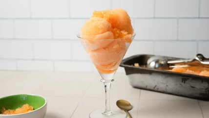 Good news, you don't need an ice cream machine to make this cantaloupe sorbet. Instead, you can use the freeze-and-stir method, but keep in mind it'll require you to be a bit more hands-on with the process.