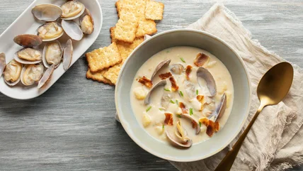 Clam Chowder Is Served With Homemade Saltines At This Boston-Based Seafood Restaurant